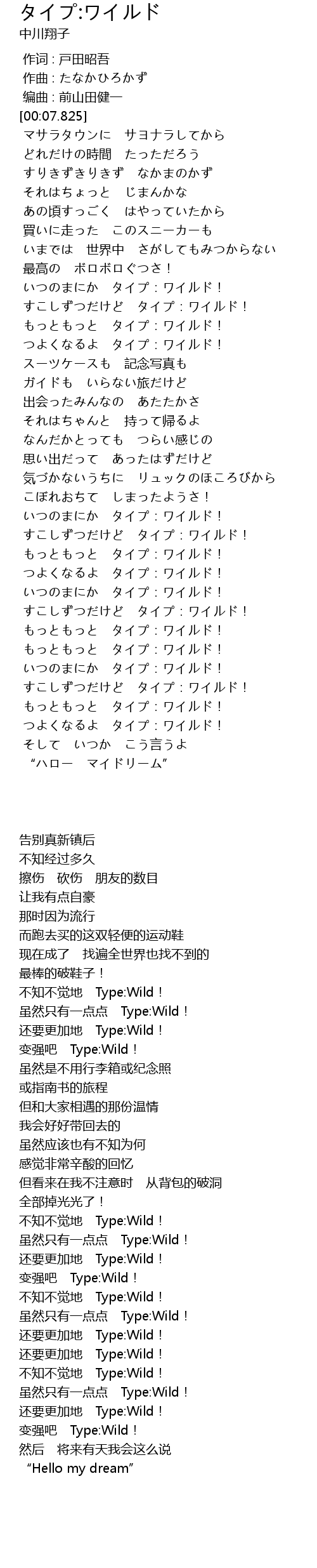 | [00:56.571] | いつのまにか タイプ:ワイルド! |