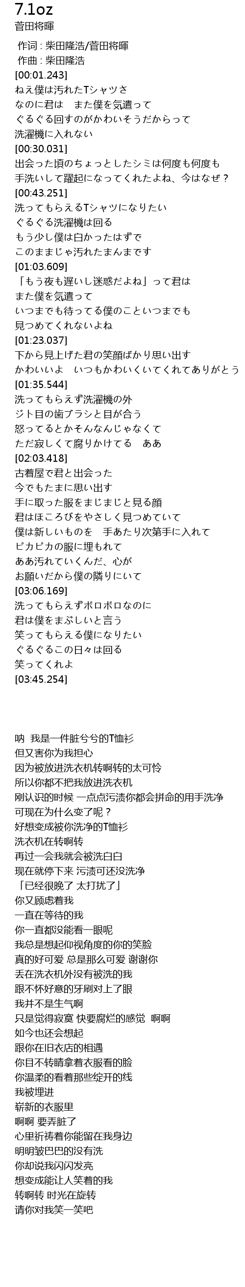 | [00:43.367] | 洗ってもらえるTシャツになりたい |