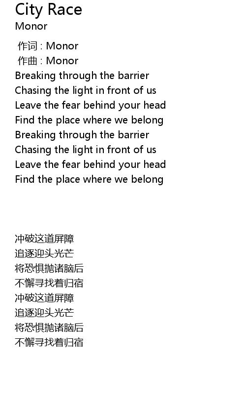 | [00:00.000] | 作词 : Monor |