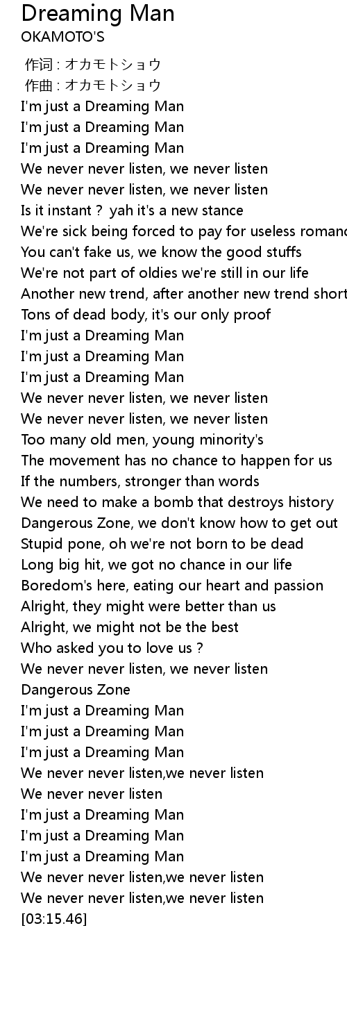 | [03:00.85] | I'm just a Dreaming Man |
