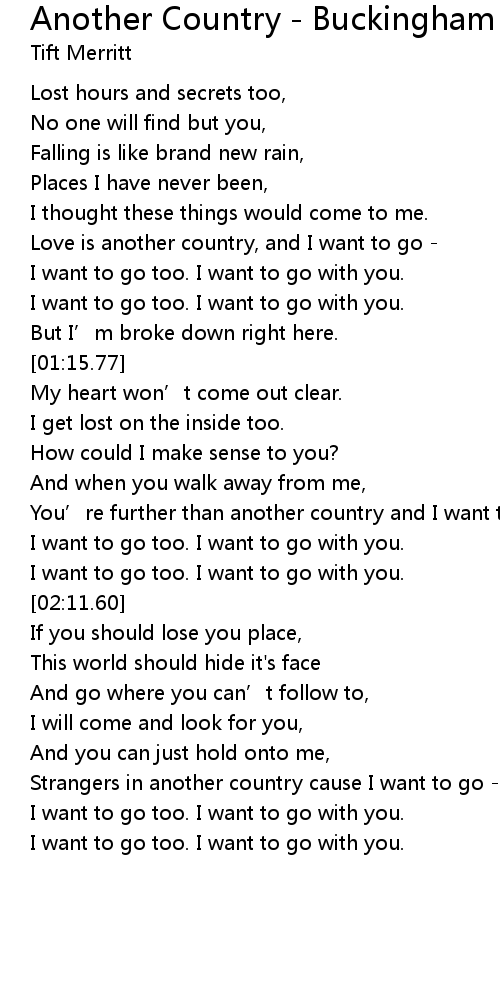 | [03:10.23] | Strangers in another country cause I want to go - |
