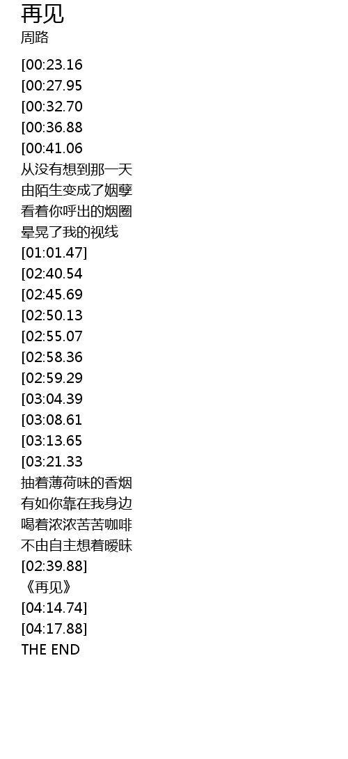 | [04:05.26] | 《再见》 |