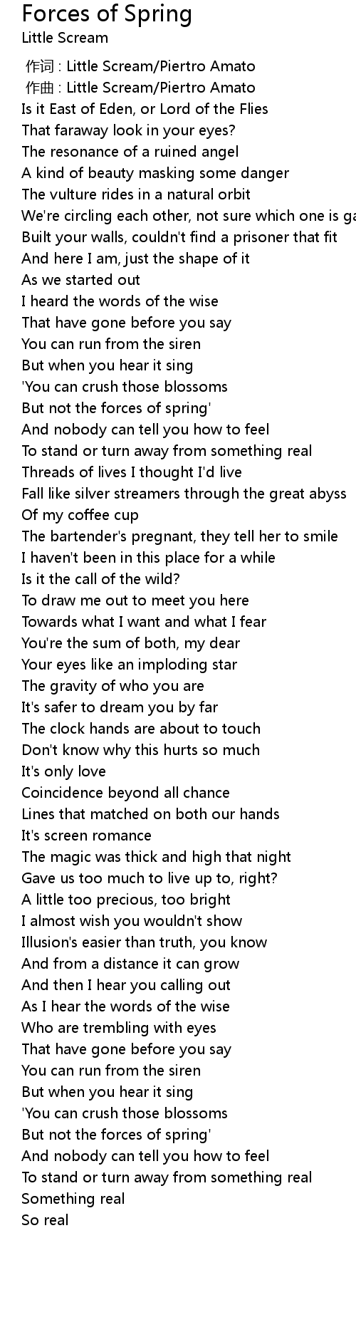| [00:00.000] | 作词 : Little Scream/Piertro Amato |