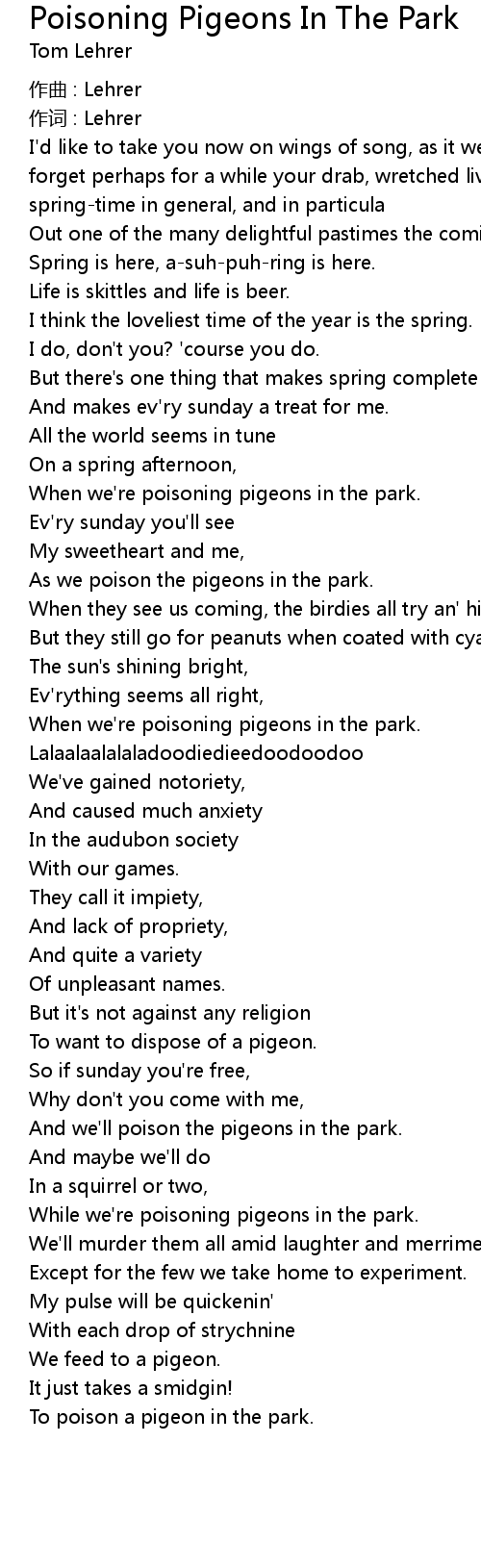 | I' d like to take you now on wings of song, as it were, and try and help you forget perhaps for a while your drab, wretched lives. here' s a song all about springtime in general, and in particula | |