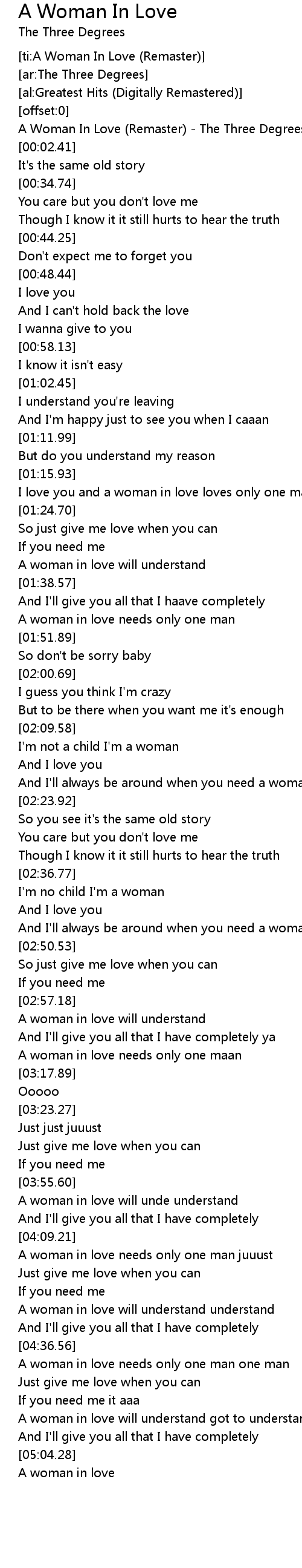 [ti:A Woman In Love (Remaster)] |