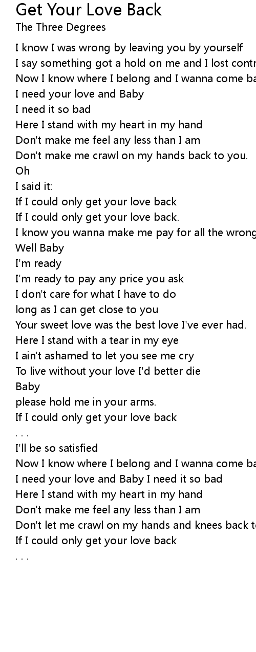 Get Your Love Back Lyrics