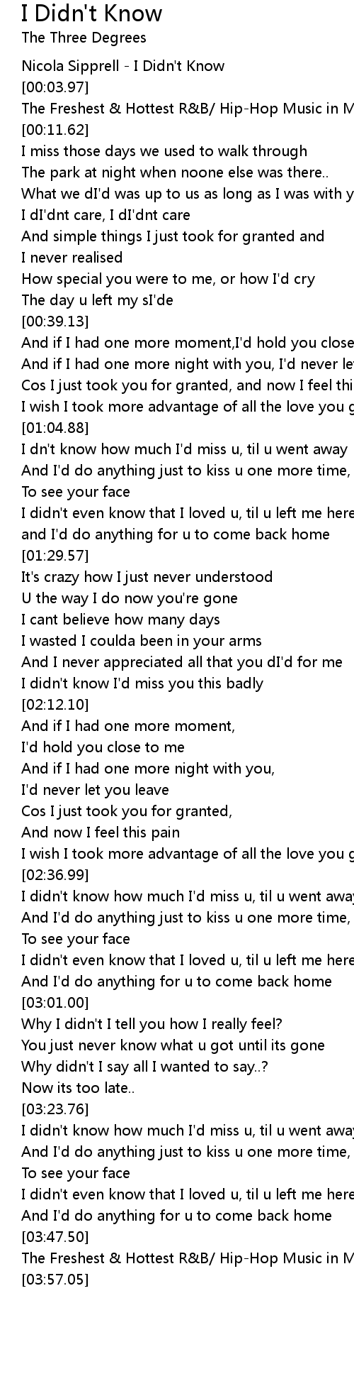 I didn't know how much I'd miss u, til u went away |