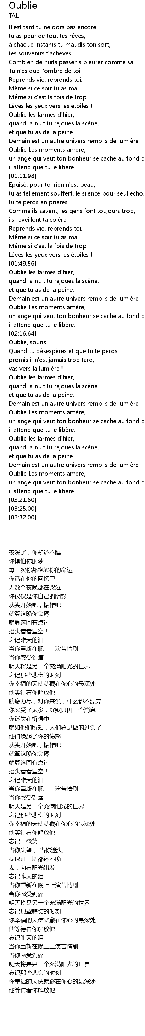 | [02:36.03] | Demain est un autre univers remplis de lumière. |