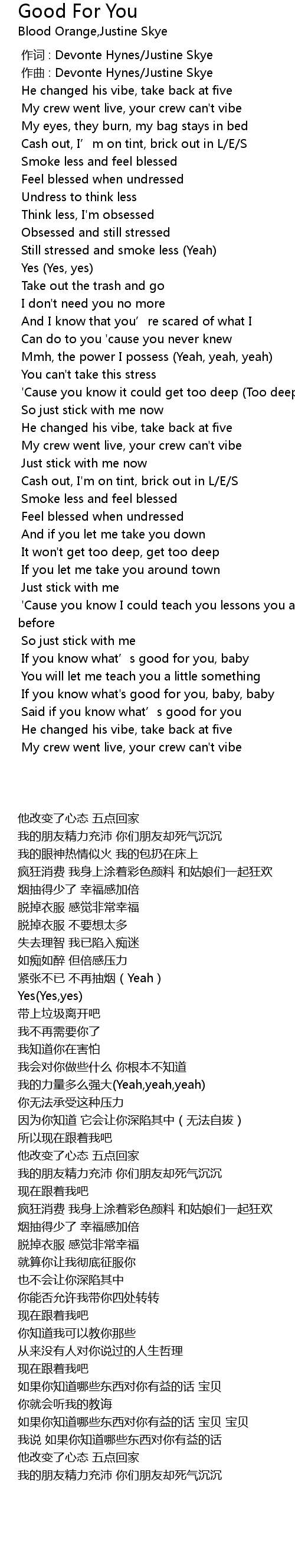 | [00:00.000] | 作词 : Devonte Hynes/Justine Skye |