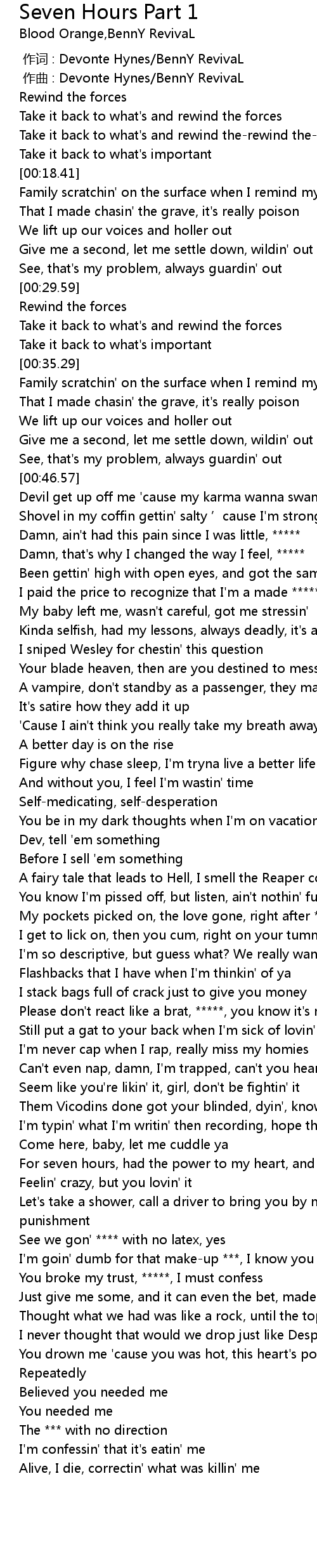 | [00:00.00] | zuò cí : Devonte Hynes BennY RevivaL |