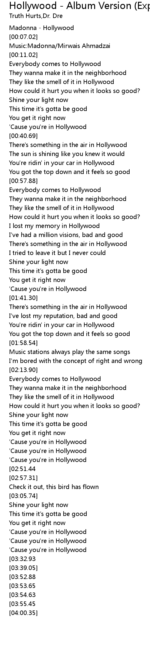 'Cause you're in Hollywood |