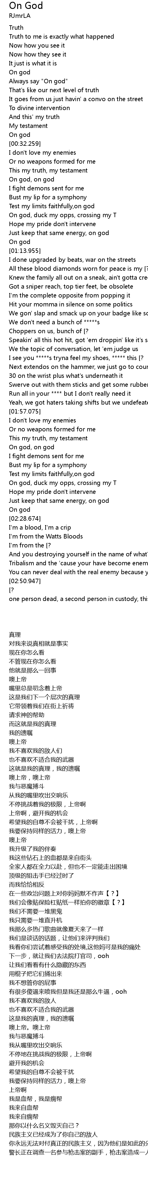 | [00:14.040] | Always say "On god" |