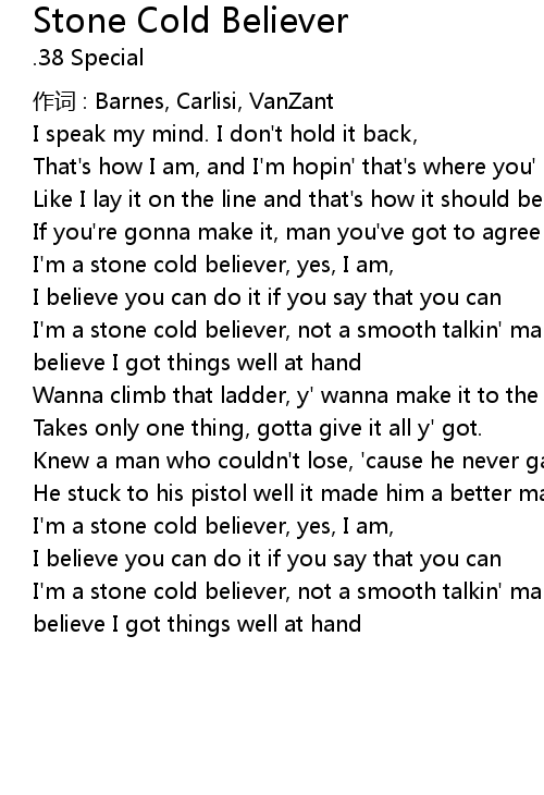| I' m a stone cold believer, yes, I am, | |