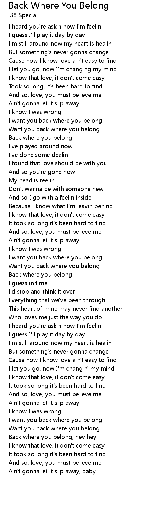 I want you back where you belong |