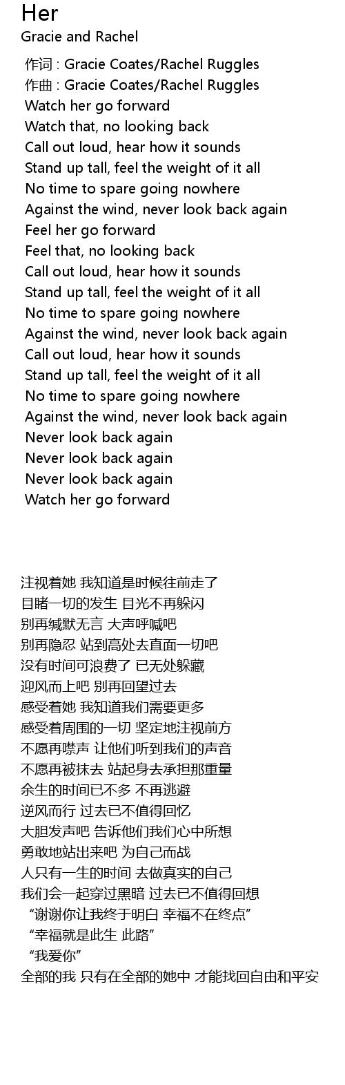 | [00:00.000] | zuò cí : Gracie Coates Rachel Ruggles |