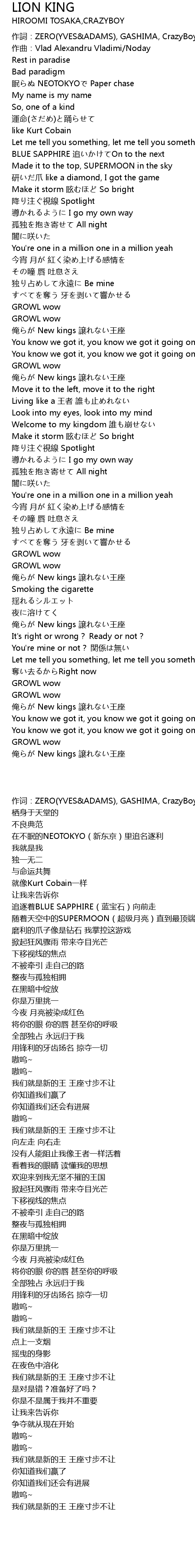 | [01:34.028] | 俺らが New kings 譲れない王座 |