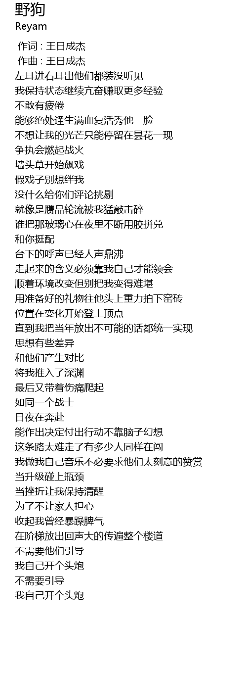 | [00:00.000] | 作词 : 王日成杰 |