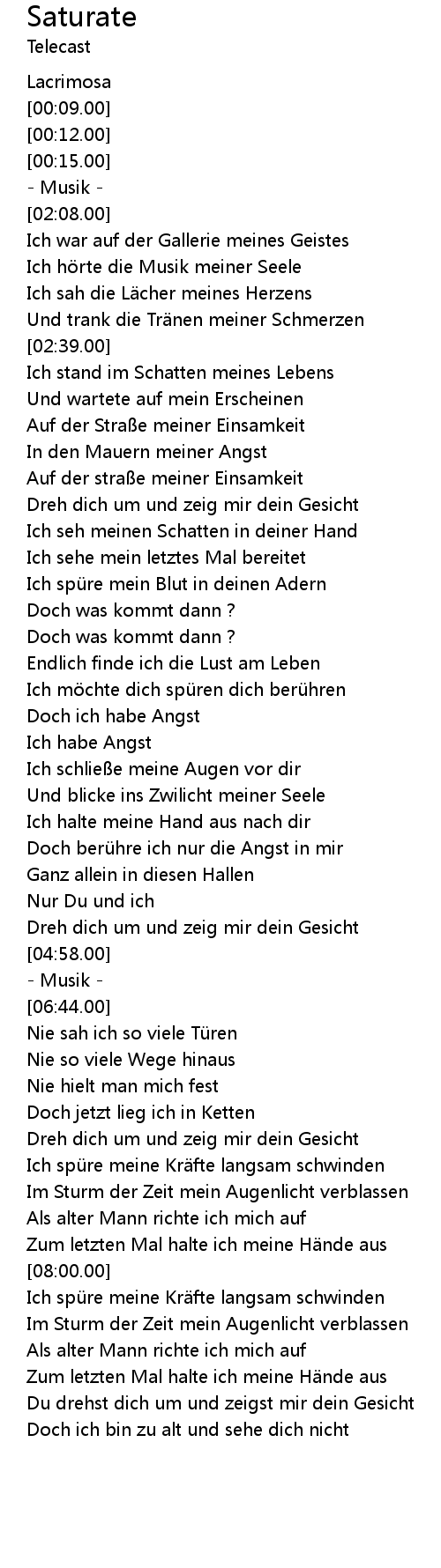 | [08:10.34] | Im Sturm der Zeit mein Augenlicht verblassen |