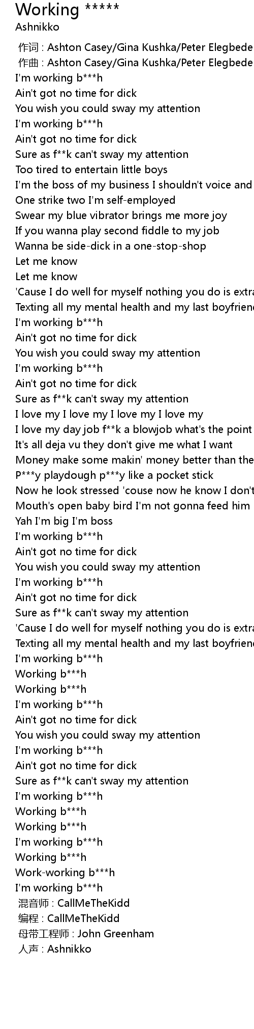 | [01:24.17] | I love my day job f**k a blowjob what's the point |