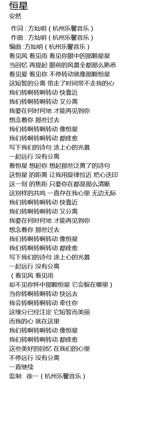 | [00:00.00] | 作词 : 方灿明(杭州乐馨音乐) |