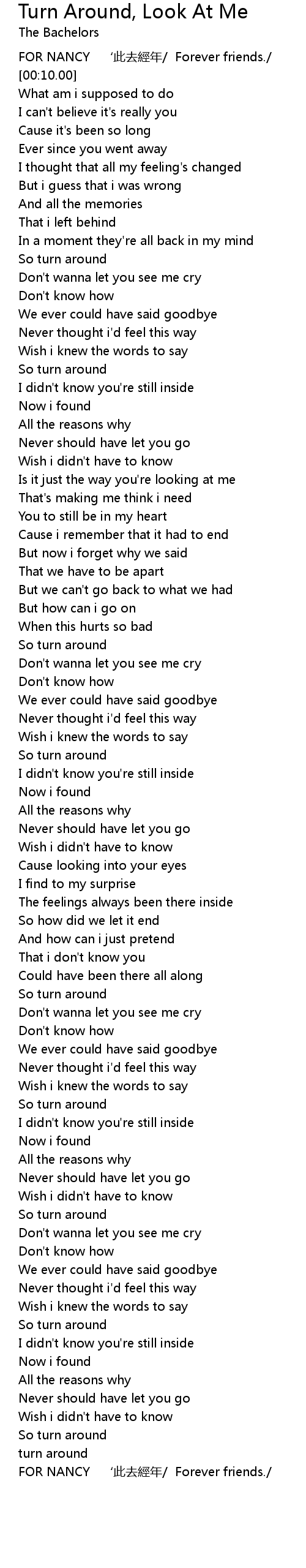 | [00:03.00] | FOR NANCY ‘此去經年/ Forever friends./ |