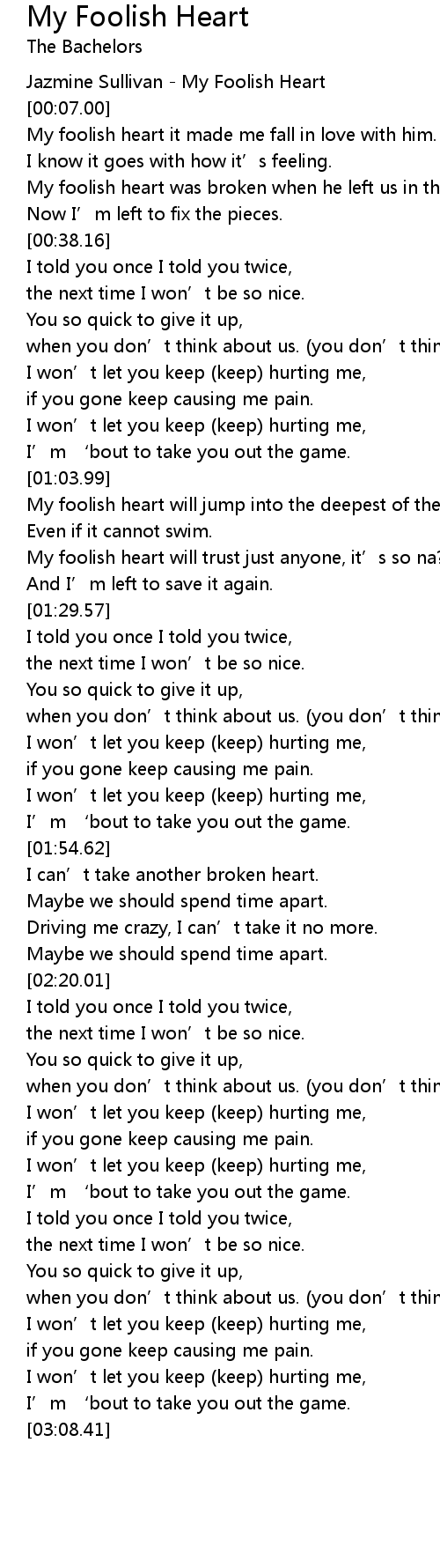 | [00:02.00] | Jazmine Sullivan My Foolish Heart |
