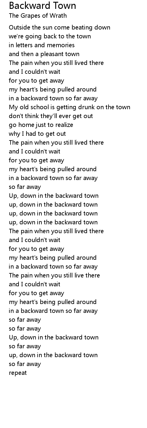 in a backward town so far away |