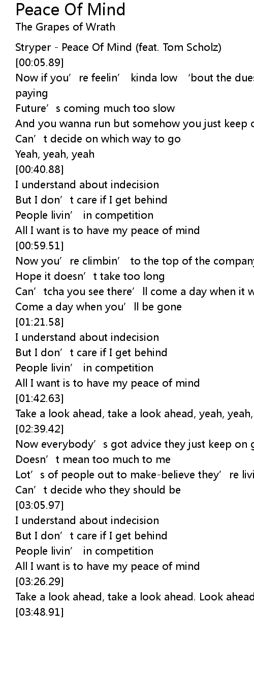 | [00:51.93] | All I want is to have my peace of mind |
