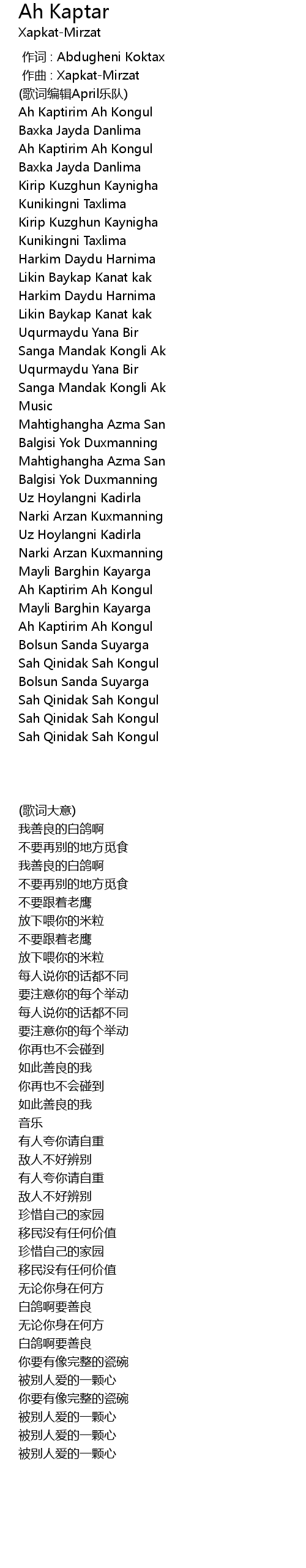 | [00:00.000] | zuò cí : Abdugheni Koktax |