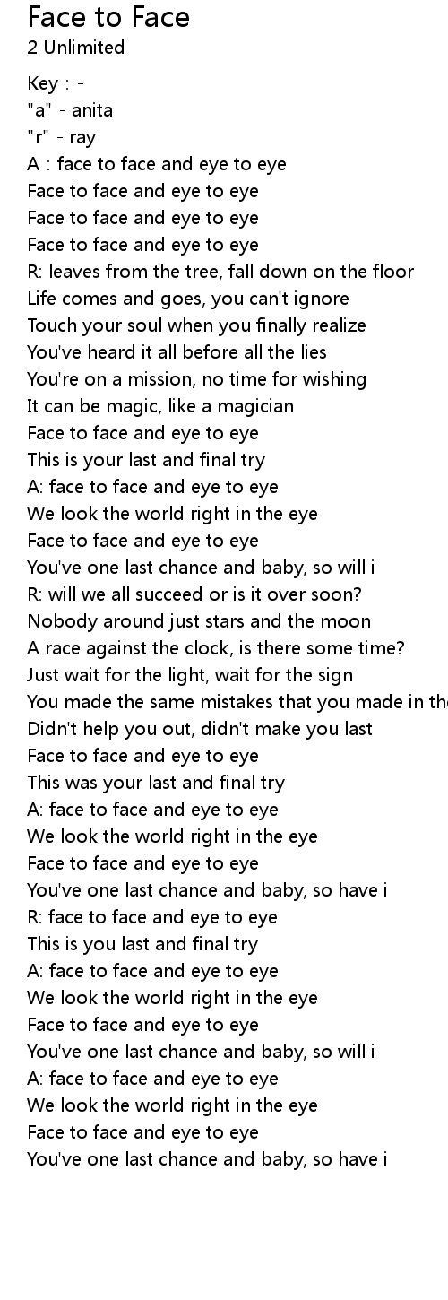 | Song | Face to Face |