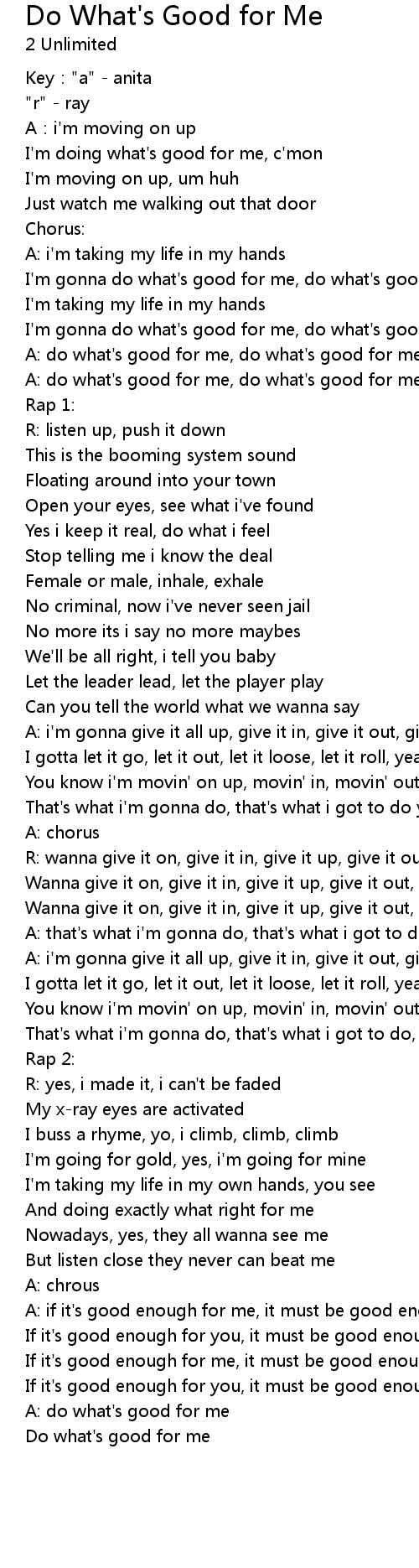 | I' m gonna do what' s good for me, do what' s good for me | |