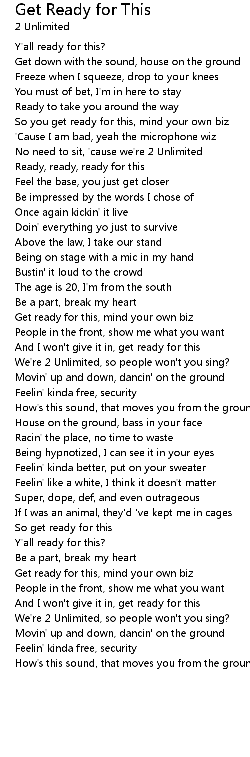 No need to sit, 'cause we're 2 Unlimited |