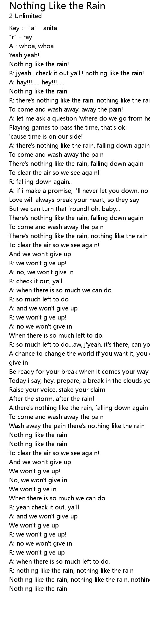 | R: there' s nothing like the rain, nothing like the rain, | |