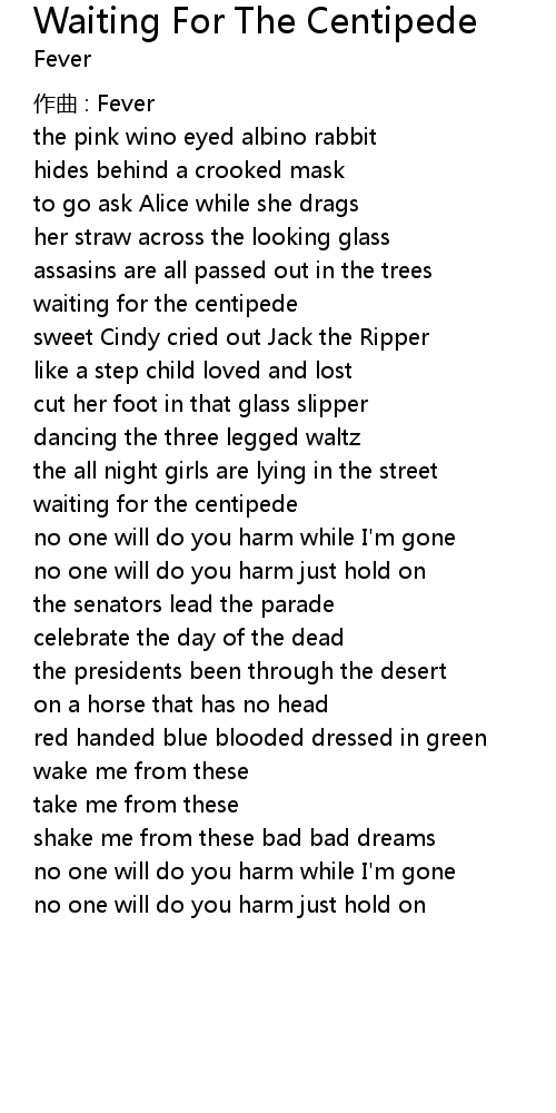 | Song | Waiting For The Centipede |