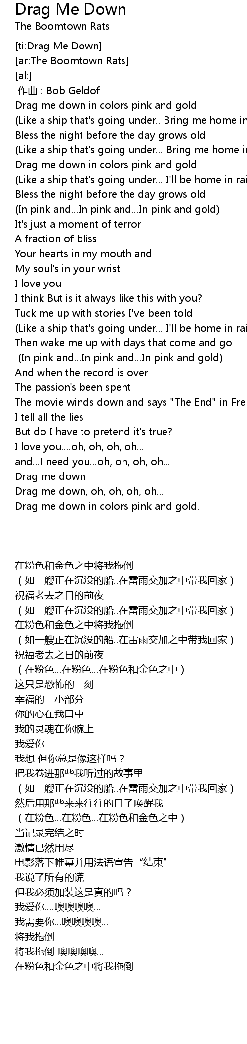 | [00:00.00] | 作曲 : Bob Geldof |