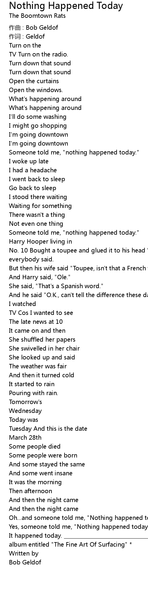 | It happened today. _________________________________________ taken from the album entitled " The Fine Art Of Surfacing" | |