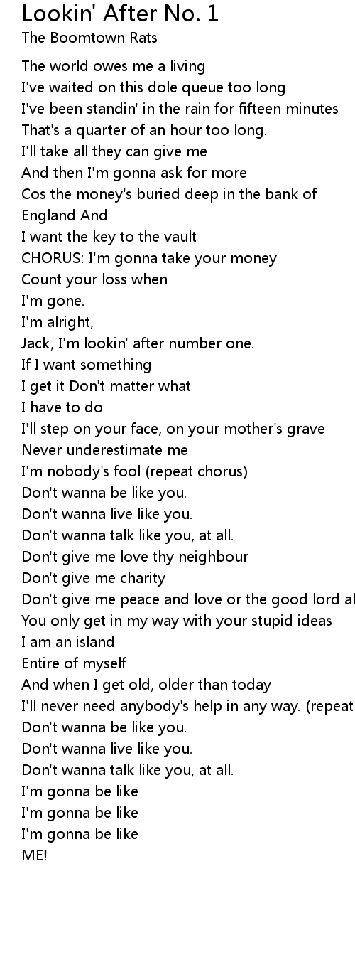 Jack, I'm lookin' after number one. |