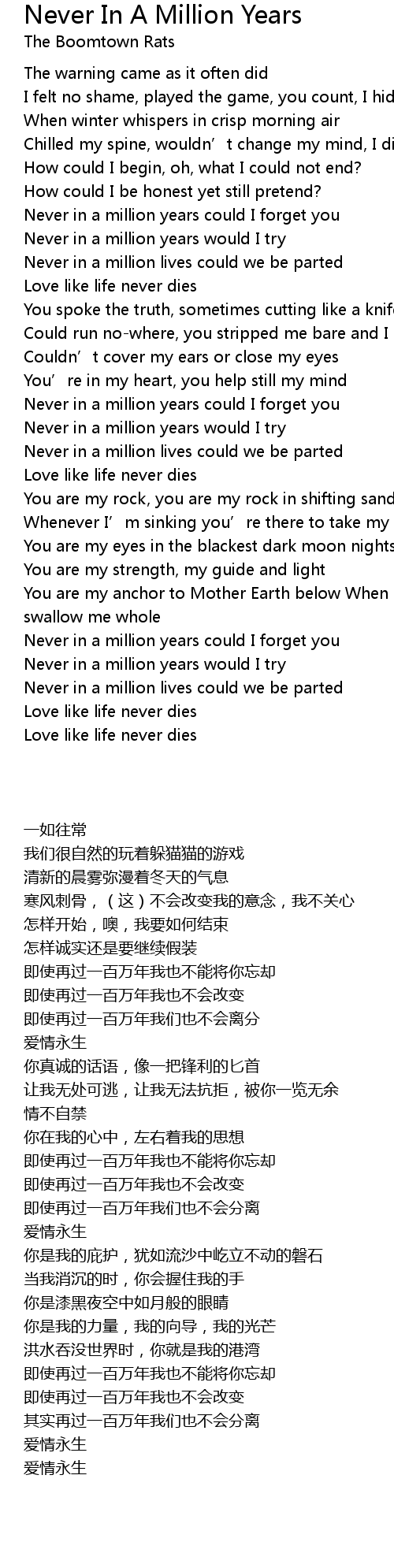 | [00:58.00] | Never in a million lives could we be parted |