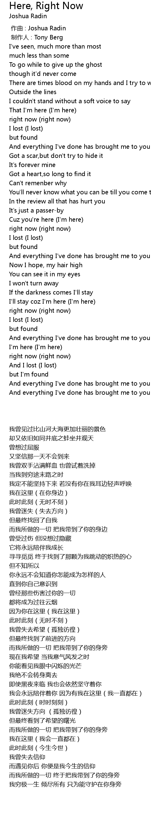 | [00:00.000] | 作曲 : Joshua Radin |