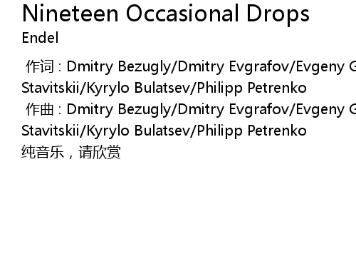 | [00:01.00] | zuò qǔ : Dmitry Bezugly Dmitry Evgrafov Evgeny Gurzhiy Oleg Stavitskii Kyrylo Bulatsev Philipp Petrenko |