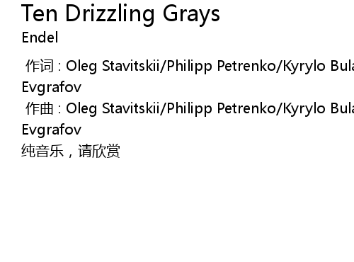 | [00:01.00] | zuo qu : Oleg Stavitskii Philipp Petrenko Kyrylo Bulatsev Dmitry Evgrafov |