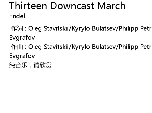 | [00:01.00] | zuo qu : Oleg Stavitskii Kyrylo Bulatsev Philipp Petrenko Dmitry Evgrafov |
