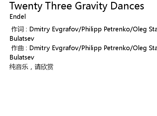 | [00:01.00] | zuo qu : Dmitry Evgrafov Philipp Petrenko Oleg Stavitskii Kyrylo Bulatsev |