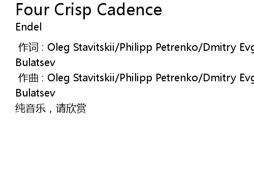 | [00:01.00] | zuo qu : Oleg Stavitskii Philipp Petrenko Dmitry Evgrafov Kyrylo Bulatsev |