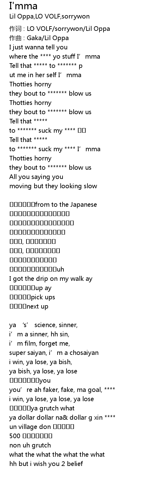 作词 : LO VOLF/sorrywon/Lil Oppa