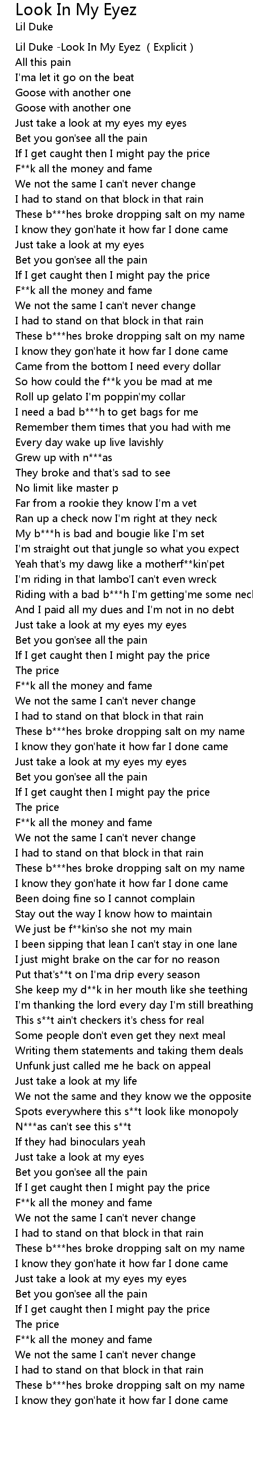 | [00:00.00] | Lil Duke Look In My Eyez Explicit |
