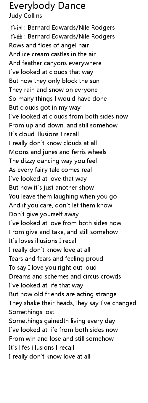 | [00:39.490] | I ve looked at clouds from both sides now |