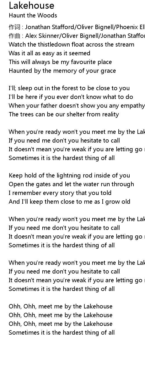 | Ohh, Ohh, meet me by the Lakehouse | |