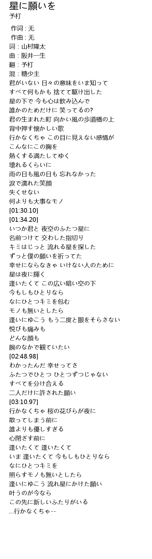 | [03:45.51] | 逢いにゆこう 流れ星にかけた願い |