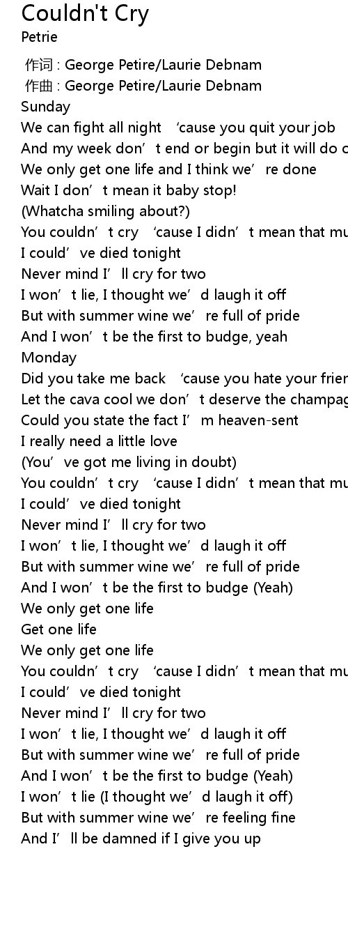 | [00:26.964] | You couldn’t cry ‘cause I didn’t mean that much to you |